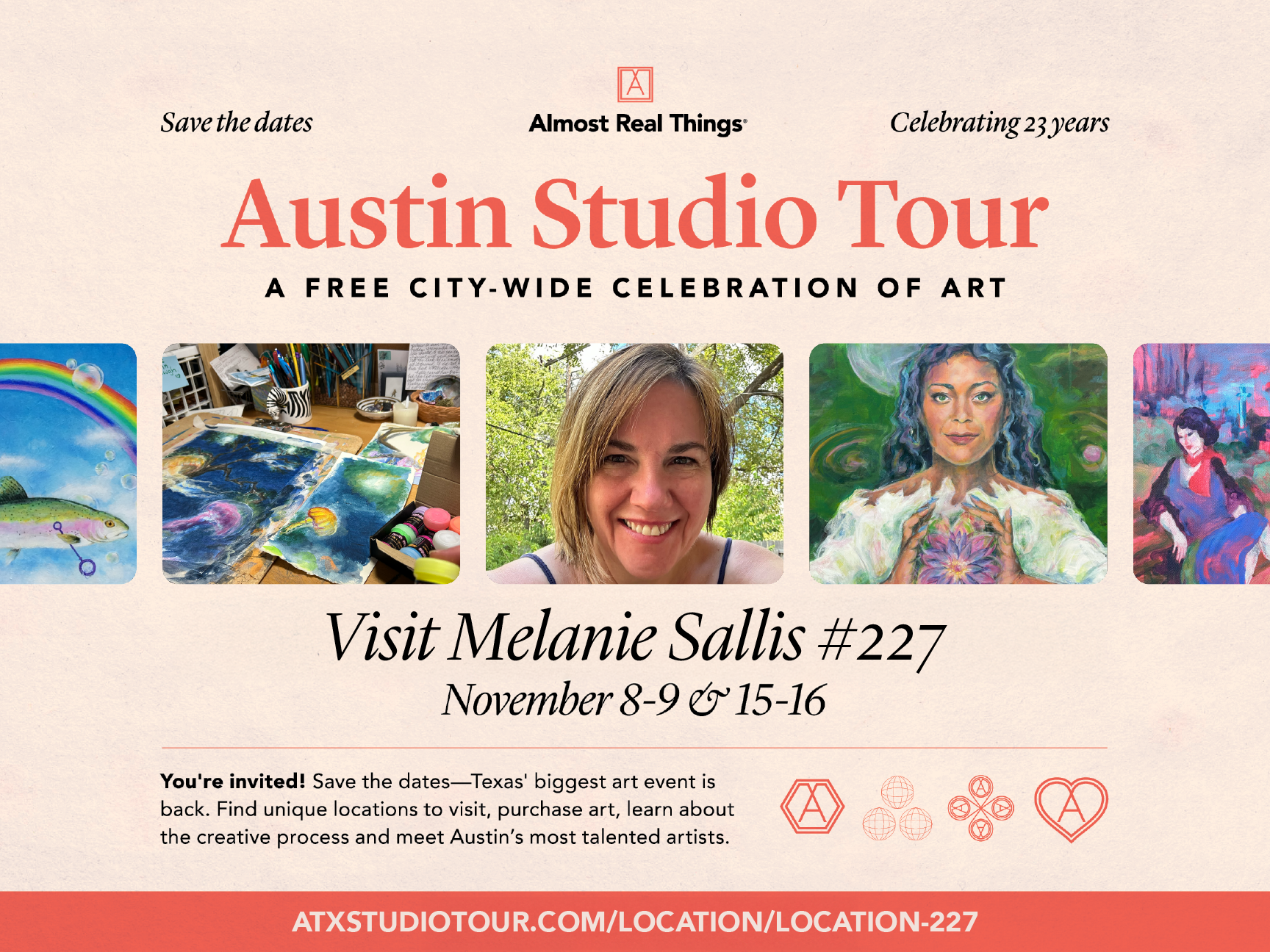 Melanie Sallis is a highly talented artist based in Austin, Texas. She works in a variety of media ranging from colored pencil to acrylic. Perhaps her favorite medium, however, is oil paint. She has had several shows in Austin and wants to expand her representation further.
